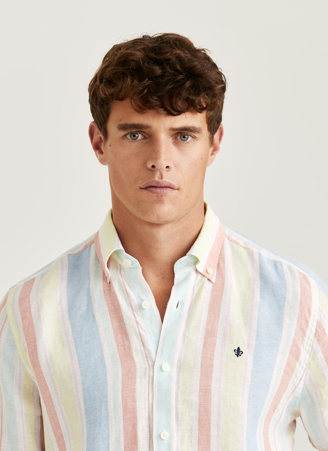 Summer Happy Linen Stripe Shirt er laget i Morris’ ikoniske linkvalitet – lett, luftig og elegant. Perfekt for varme dager når du vil kombinere komfort med stil. Bruk den med denim tidlig på sesongen, hvite chinos for en preppy look, eller sammen med badebukser når sommeren er på sitt varmeste. Skjorten har en klassisk passform med plissert rygg og elegante ermefolder.